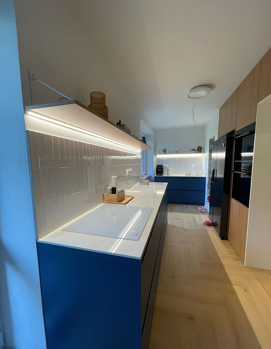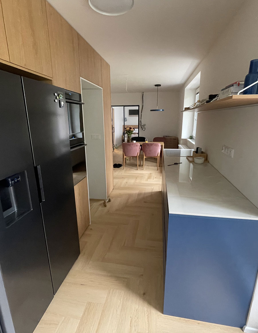 Kompletní rekonstrukce bytu (bourací práce, vyzdění, sádrokartonové podhledy, elektřina, instalatérské práce, nábytek).