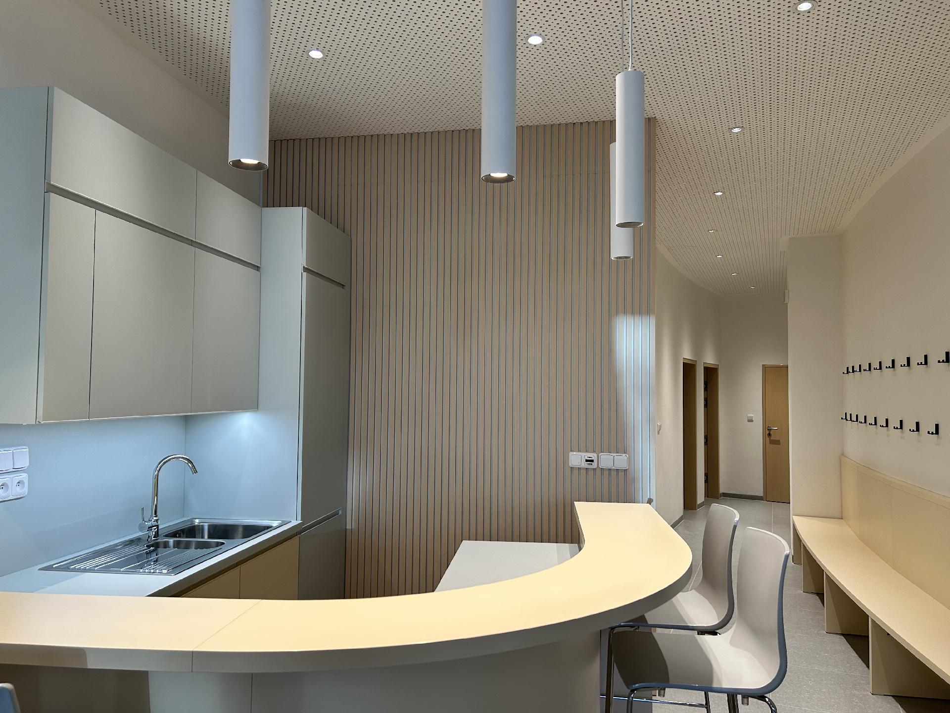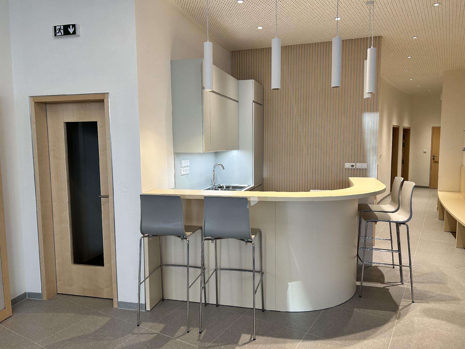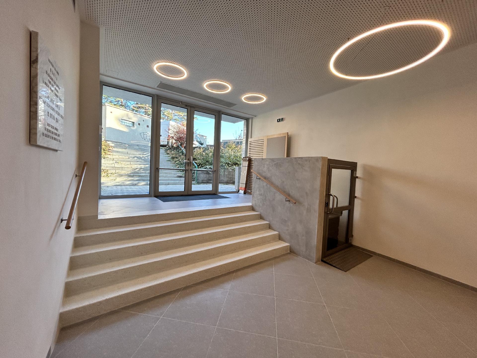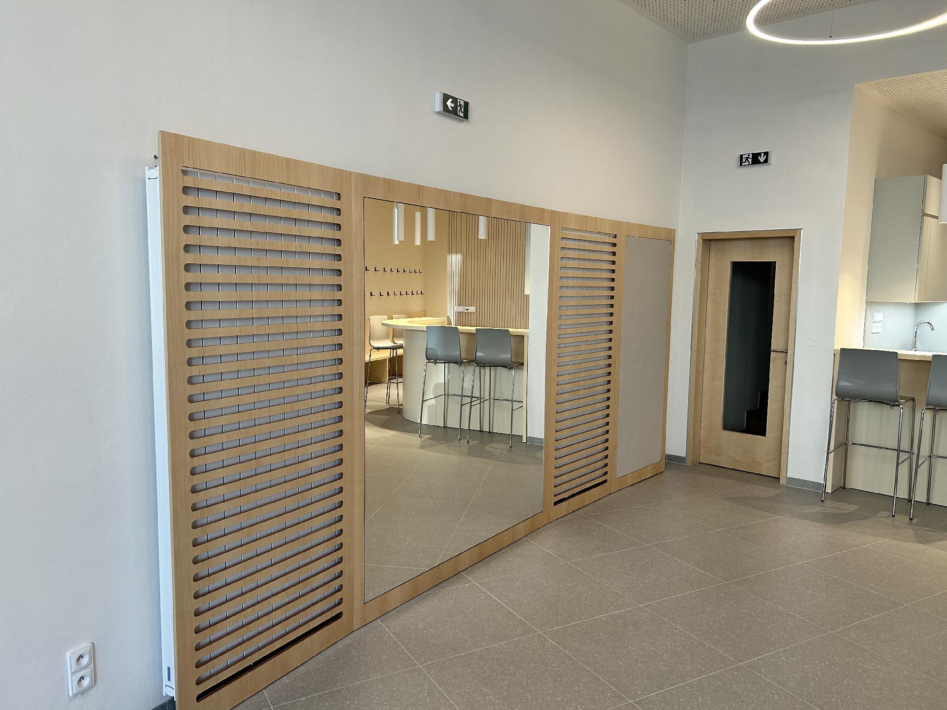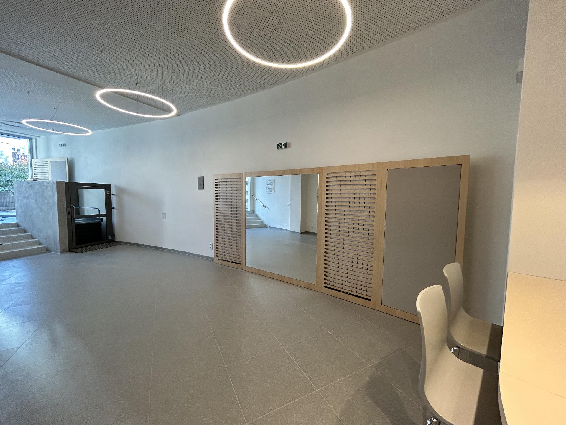 Rozsáhlá rekonstrukce předsálí (demoliční práce, nové rozvody topení, vody a elektřiny, omítky, obklady, sociální zařízení, schody z litého terasa)